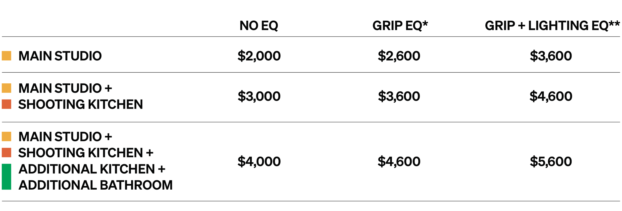 **The GRIP + LIGHTING EQ Package includes ALL items listed in the equipment page: www.mocha.nyc/equipment